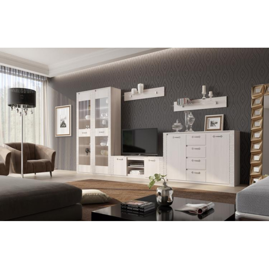 В коллекции Элана есть модули для гостиной, спальни и прихожей.