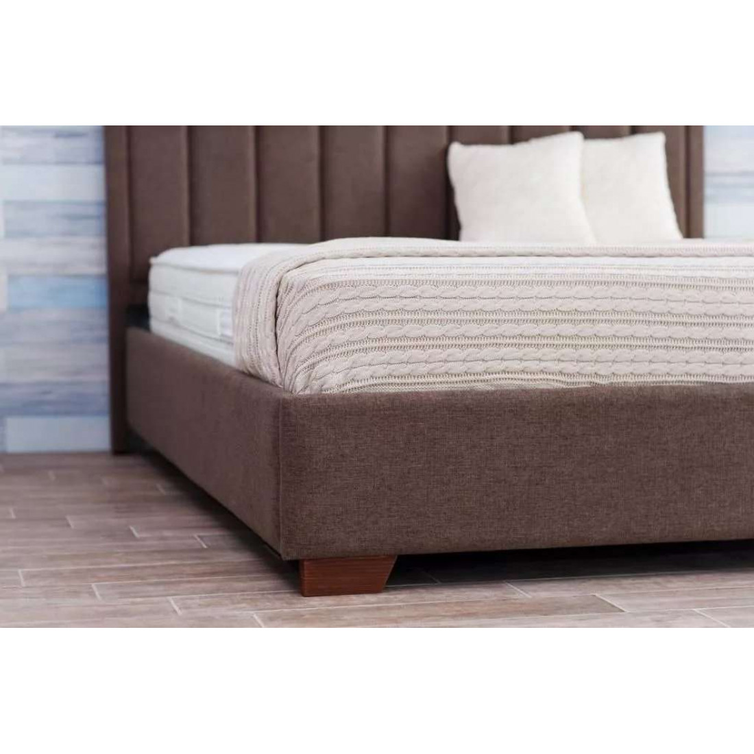 Кровать оснащена встроенным основанием для матраса — прямыми ламелями из березовой фанеры.