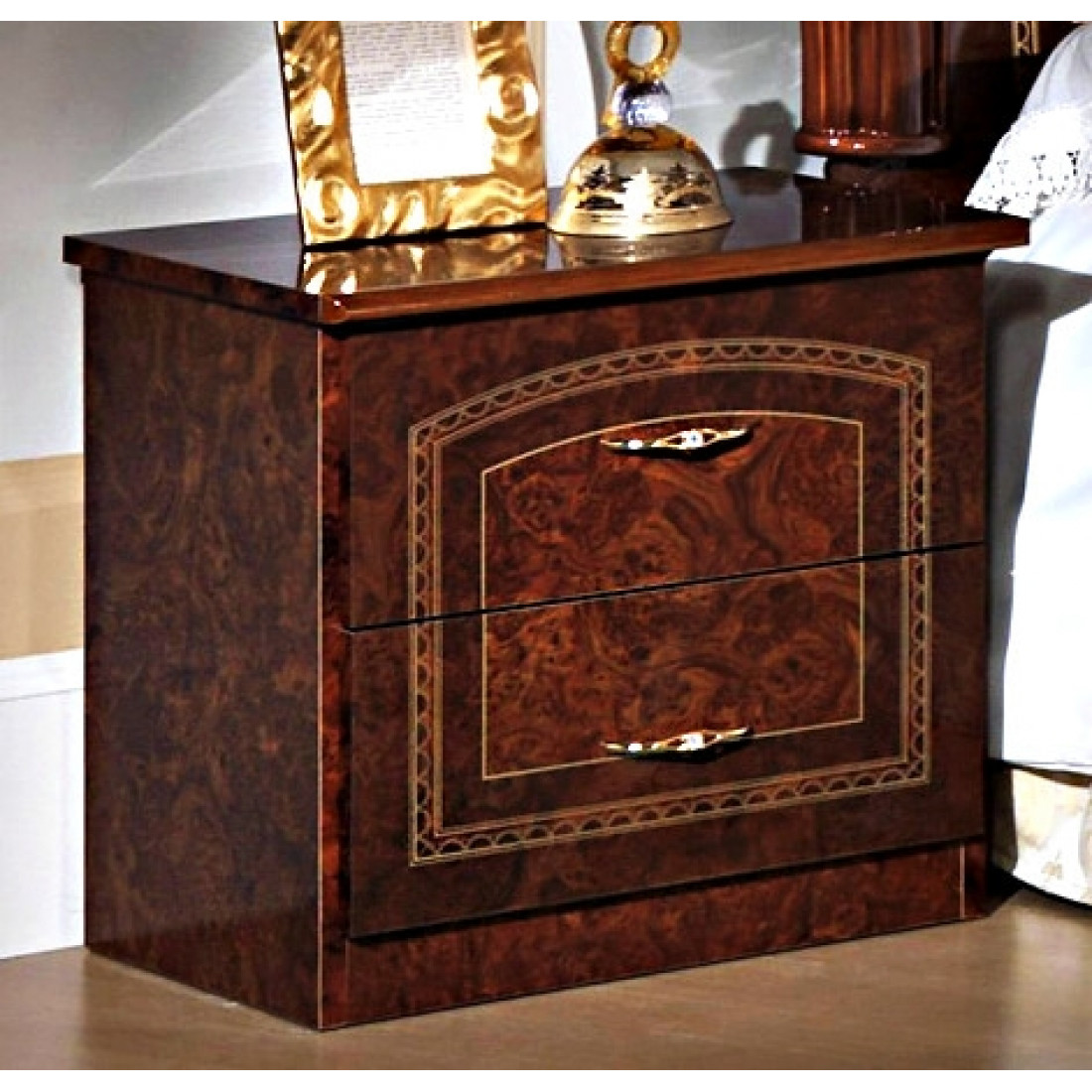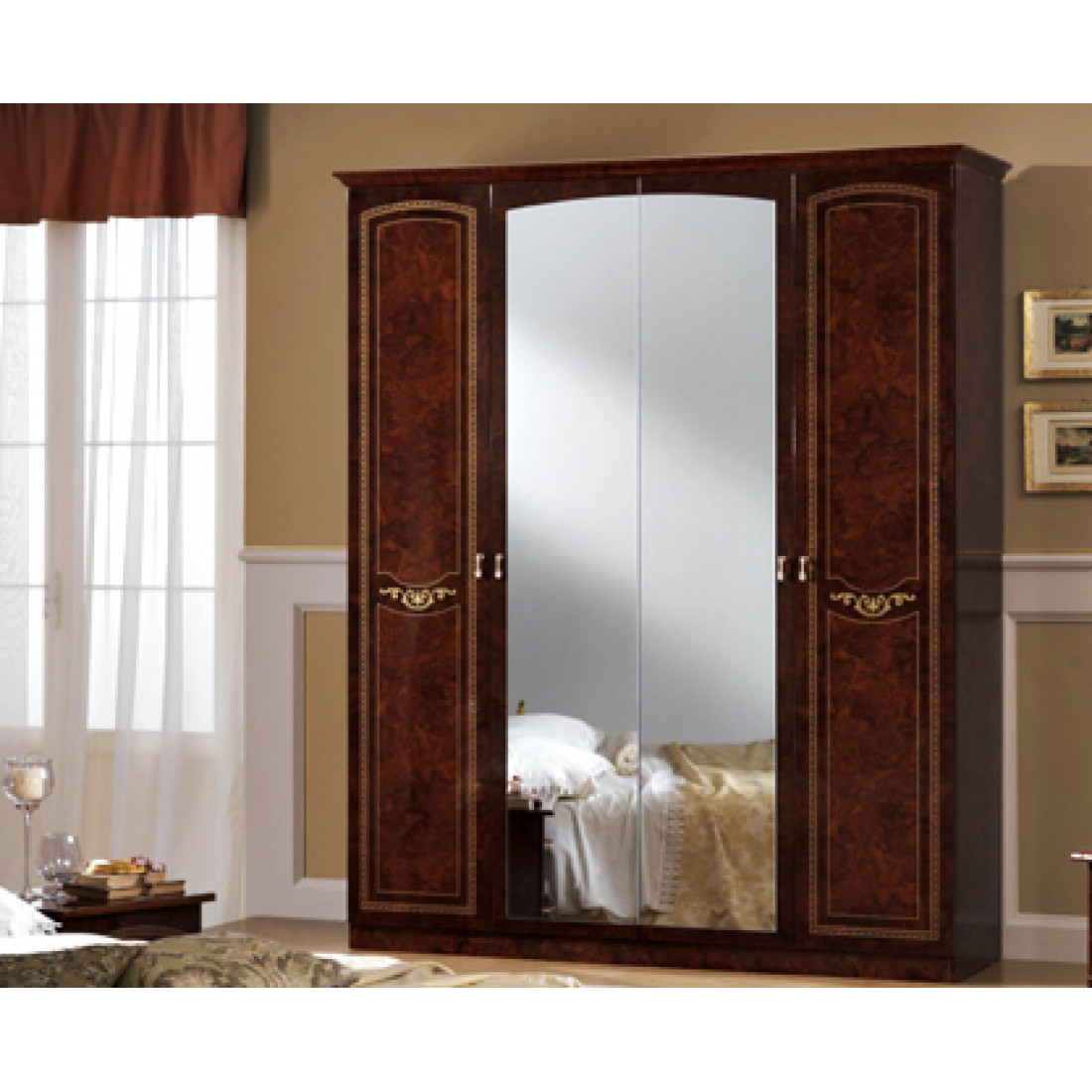 Спальня Ирина (орех) от Российской фабрики «ДИА мебель» выполнена в строгом ореховом цвете в сочетании с глянцевым покрытием. Такая спальня поможет Вам насладиться прекрасным сном, забыть обо всех проблемах и окунуться в атмосферу роскоши и комфорта. Все модули этой композиции украшены резными вставками и росписью на фасаде. Без шумные дверцы и полки помогут вам забыть про неприятный шум по утрам. Коллекция "Ирина" предназначена для настоящих ценителей классического стиля.
