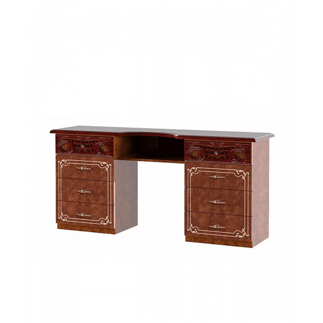 Туалетный столик Роза ТС 160 (орех) от фабрики ДИА мебель выполнен в классическом стиле. Цвет ореха в сочетании с глянцевым покрытием придаст вашей спальне больше элегантность и эстетичность. Такой столик не займет много места и будет незаменим в вашей спальной комнате. Большие и прочные ножки делают его неподвижным и соответственно устойчивым.